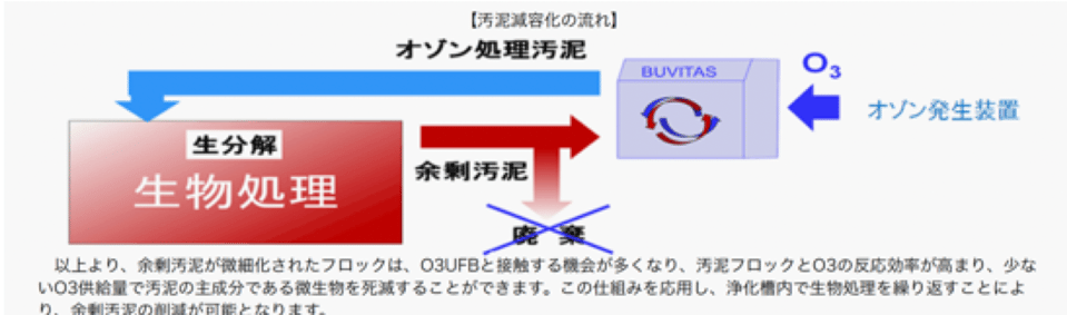 Excess sludge is sucked into the UFB generator and shear stress is applied to the sludge floc together with gas, causing it to become finer.