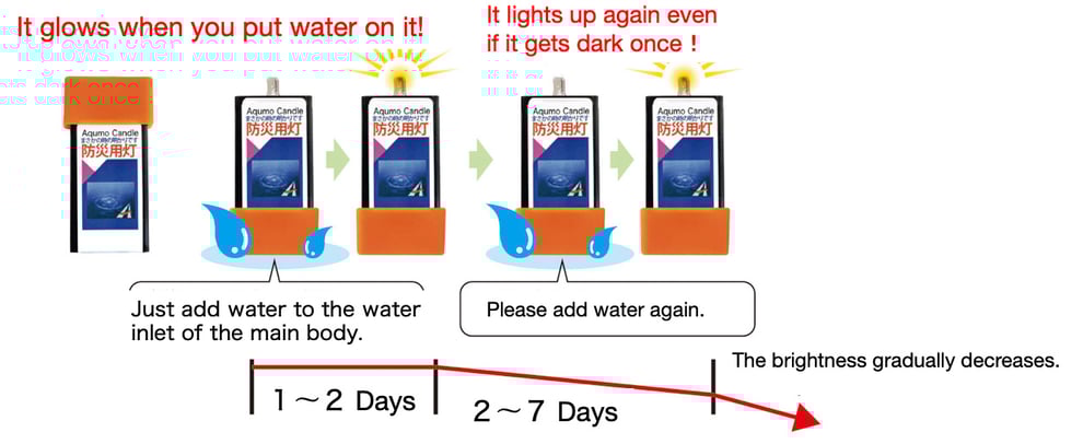 If you need to leave it in an office or public facility at all times, you can illuminate it by immersing it in water for about a week, so you can rest assured that it will be lit on the way to your home, even after returning home, until the infrastructure is ready. It will help. It can also be distributed to people in need.